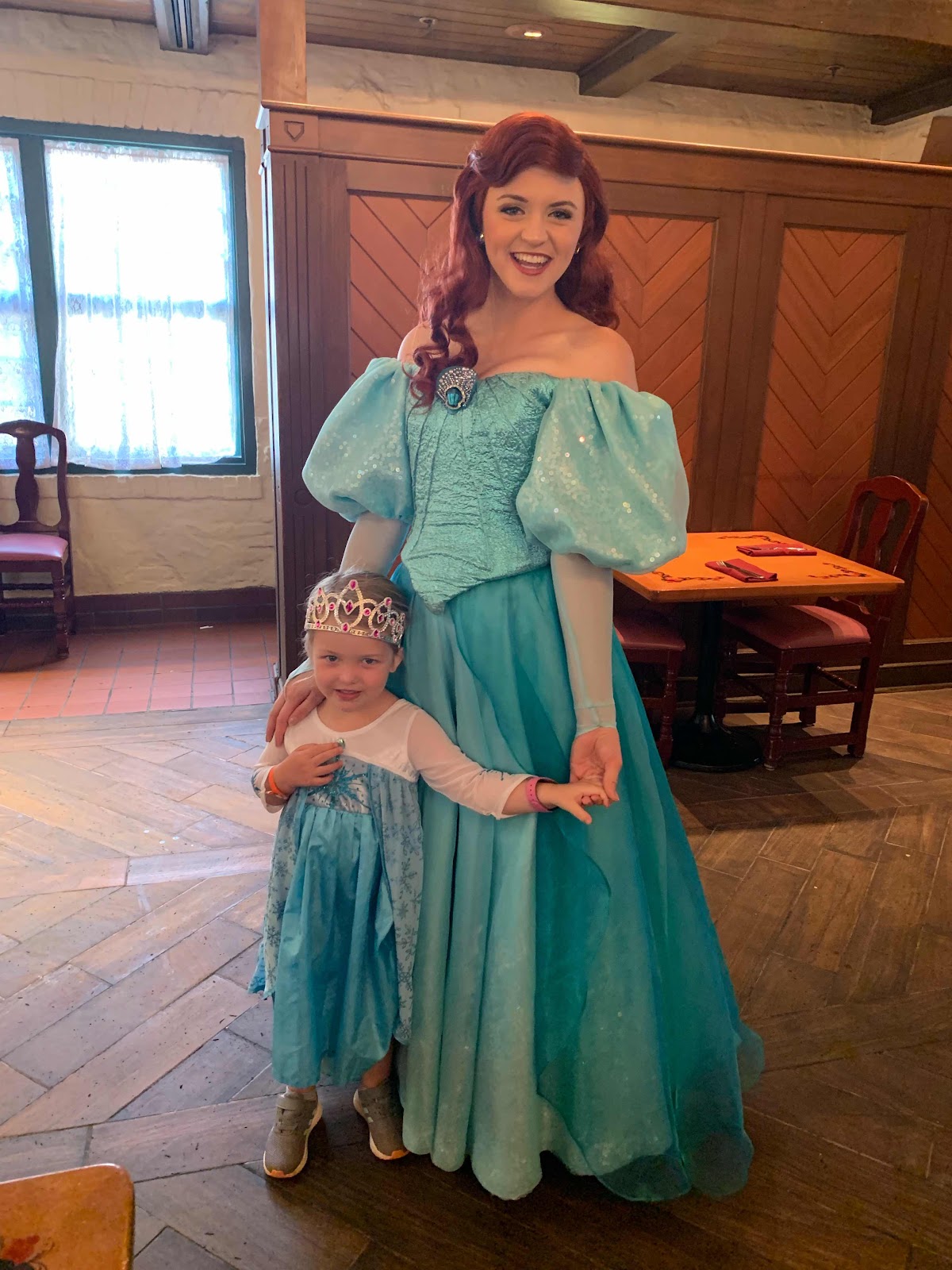 On Saturday we woke up and went over to Epcot.  We were there when they opened the park (a few minutes before 9) so we went directly to Norway to meet Elsa and Anna first!  We had 9:20am reservations for the character breakfast at Akershus Royal Banquet Hall but knew we wouldn't meet Elsa and Anna there.  My friend Hilary told me I could totally make it over to meet Elsa and Anna before the breakfast and she was spot on!  We even had time to do the Frozen ride before the breakfast.  I knew after breakfast there would be an hour wait for the ride and there was so I'm glad we did it ahead of time!  I think the Frozen ride was extra special for Molly Anne because she knows the movie so well!