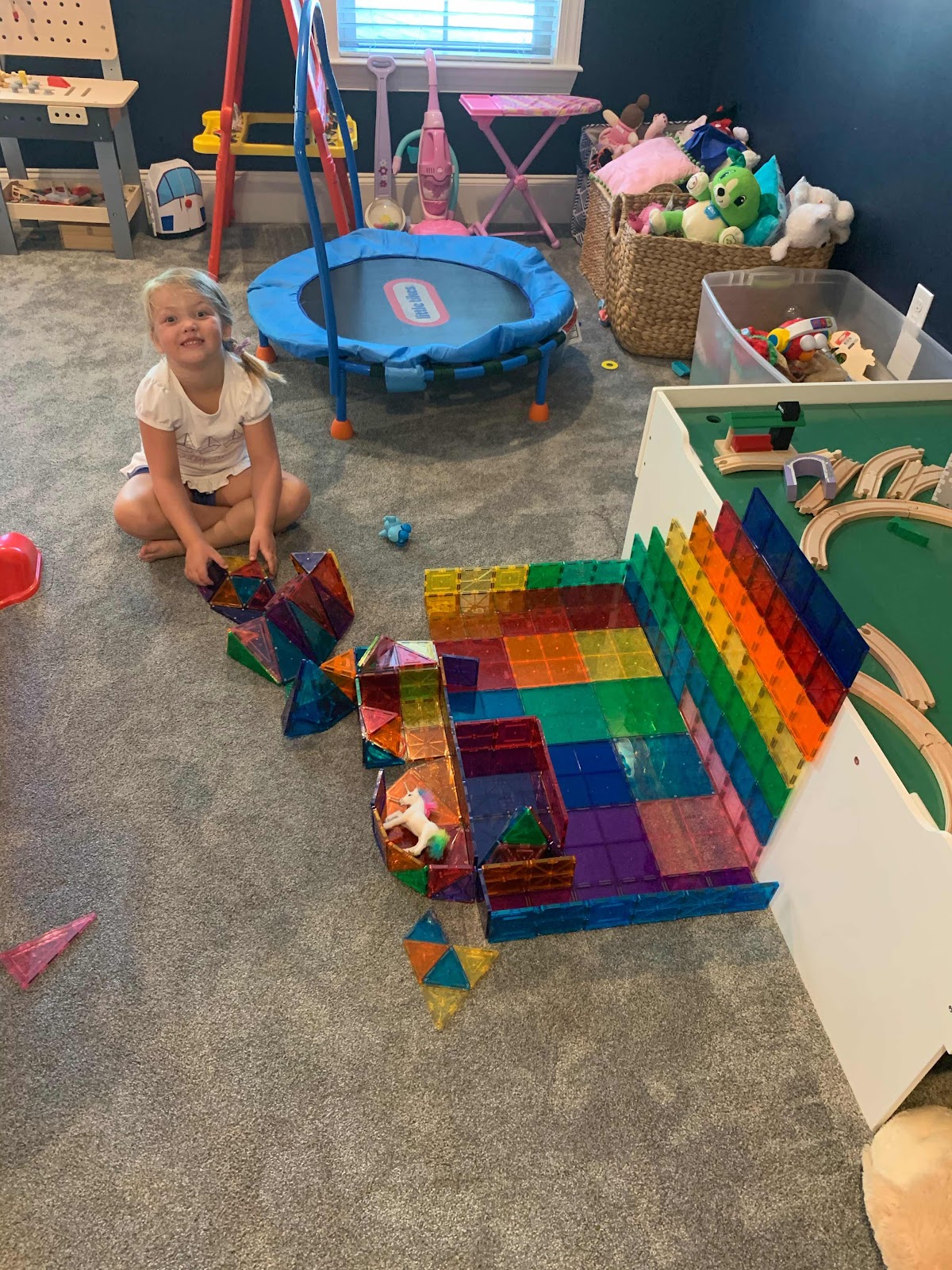 This is a unicorn castle, duh! We always have to take pictures of her creations in case Grady knocks them down! She always feels better if we have a picture!