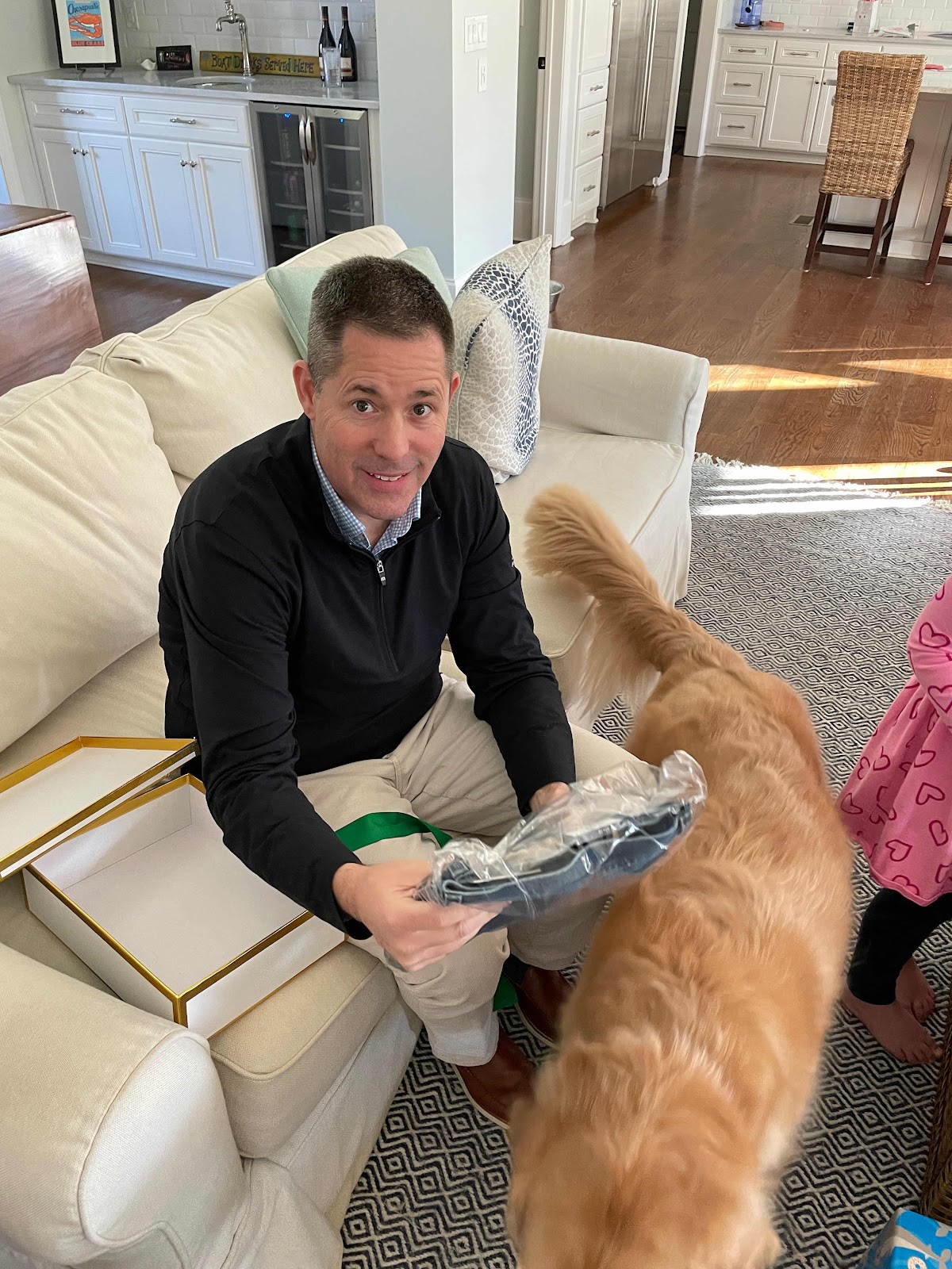 A new shirt and jeans from us! Molly Anne wanted to get him a golden retriever hat and Grady wanted to get him a Sharkys shirt (one of our fav places at the beach) so we gave him those too!