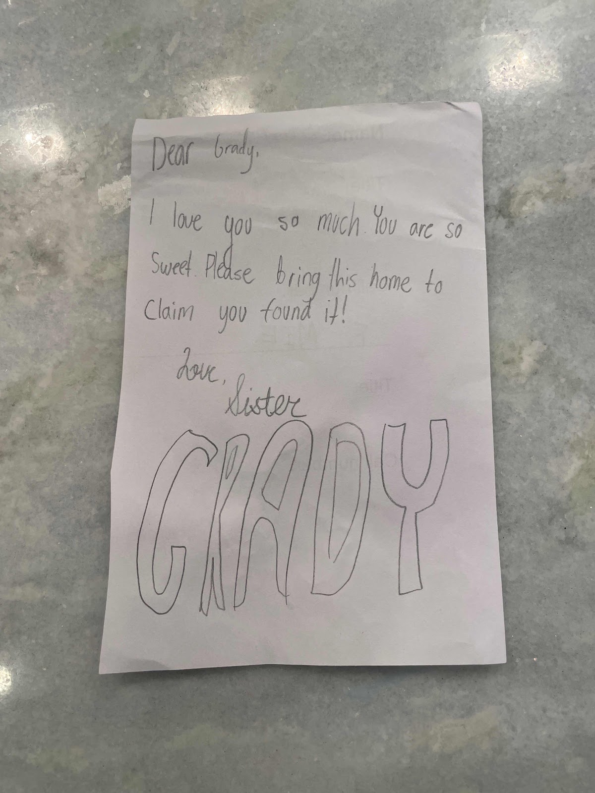 Evidently Molly Anne has been leaving Grady notes hidden in the library for over a year. He brought one home on Monday. They have the same library day this year just like they did last year. I just think this is about the cutest thing ever.