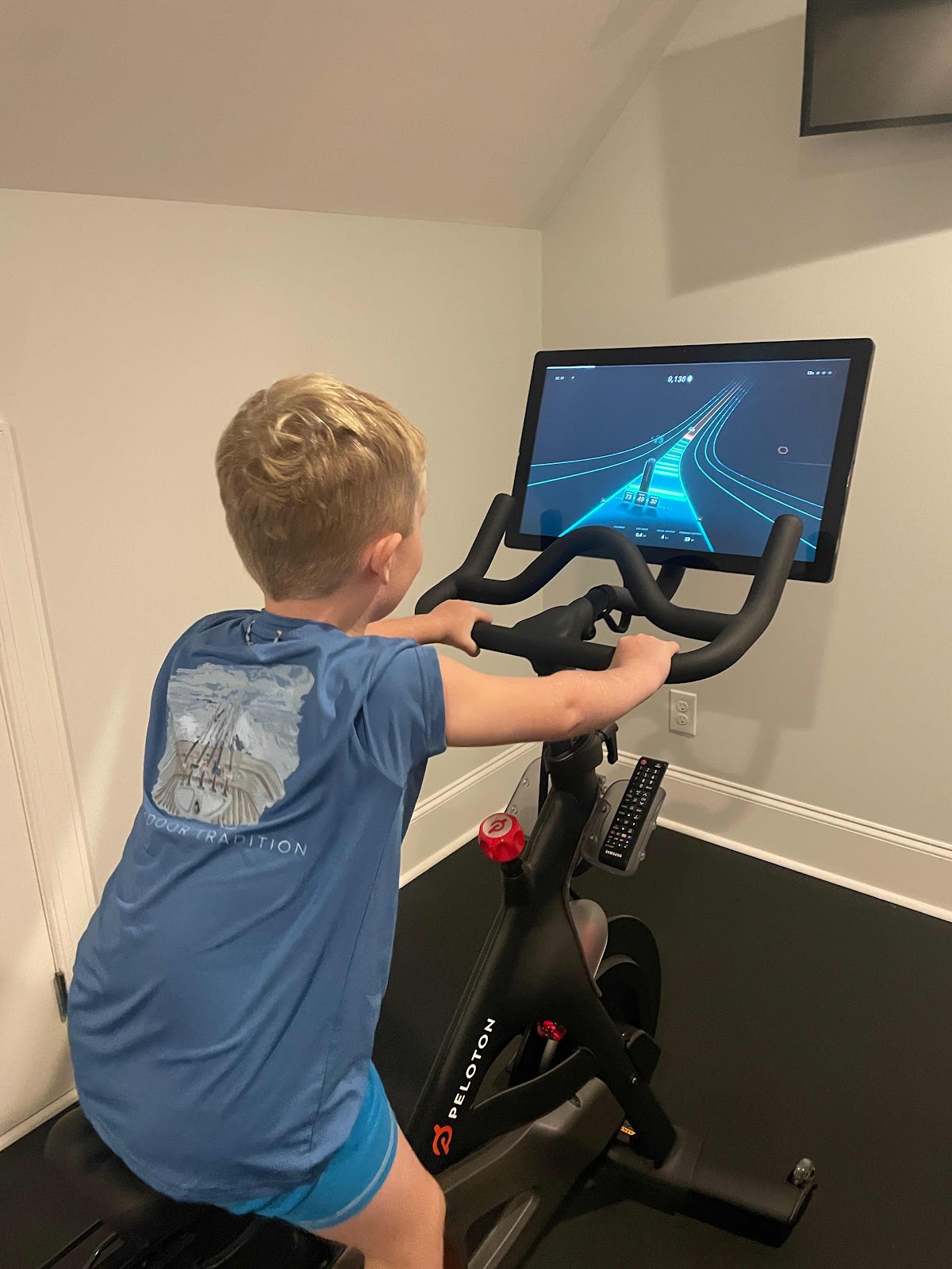 Grady loves peloton lanebreak! He did it twice last week. May need to get him shoes that fit him!