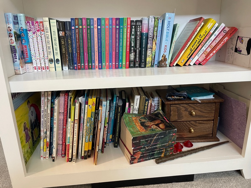 FIVE - Molly Anne's bookshelf plus more on the right side stacked that you can't see. She goes through so many books!!