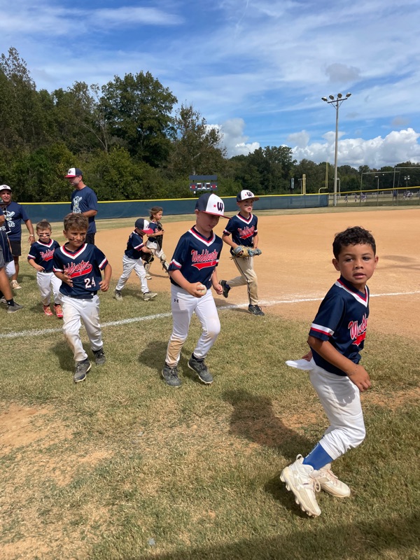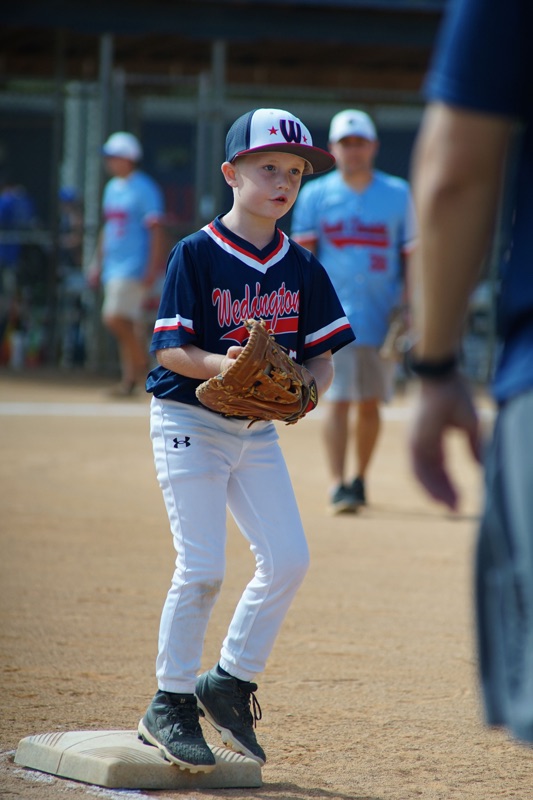 Grady had a friend spend the night Saturday. The boys are so easy when they stay over. On Sunday he got the game ball for the first game. He's loving playing first base and catching all of the balls!