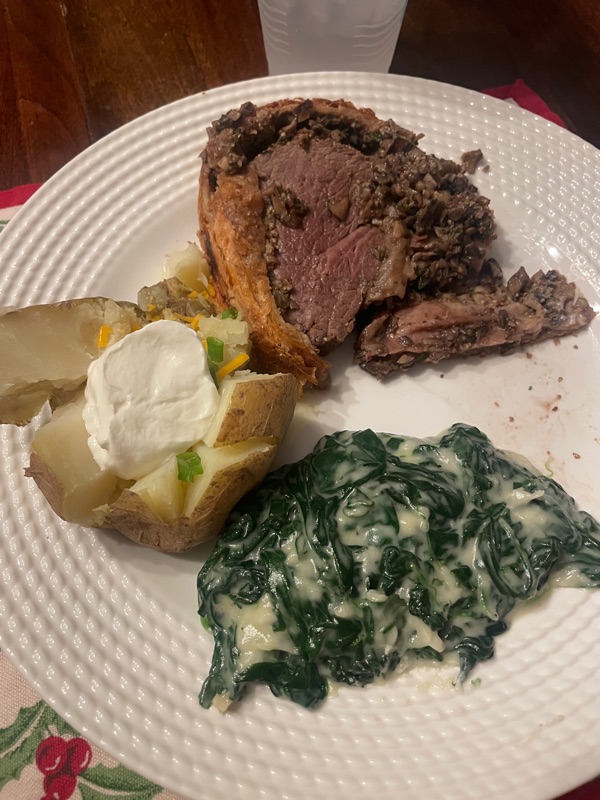Christmas Eve we made Pioneer Woman's Beef Wellington for the first time. Usually we do a standing rib roast but this was good and way easier cleanup. It also wasn't as hard as it sounds! I also made Pioneer Woman Creamed Spinach. I had made it a few years ago and I honestly haven't loved it either time. Now I know!