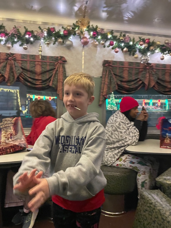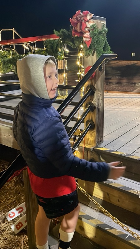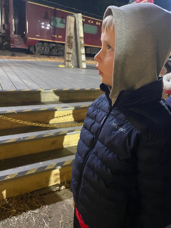 On Saturday night we headed to Spencer, NC to ride the Polar Express. We had to take the late, very dark, train at 7pm so my little people didn't realize it was a straight line about a tenth of a mile to the North Pole! We had gone in 2019 and 2022 but this year Grady extra loved it! Probably was our last time. It was fun!