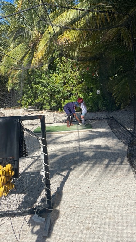 Day three. They have a batting cage on the beach - Grady was stoked! They gave him lots of great tips too.