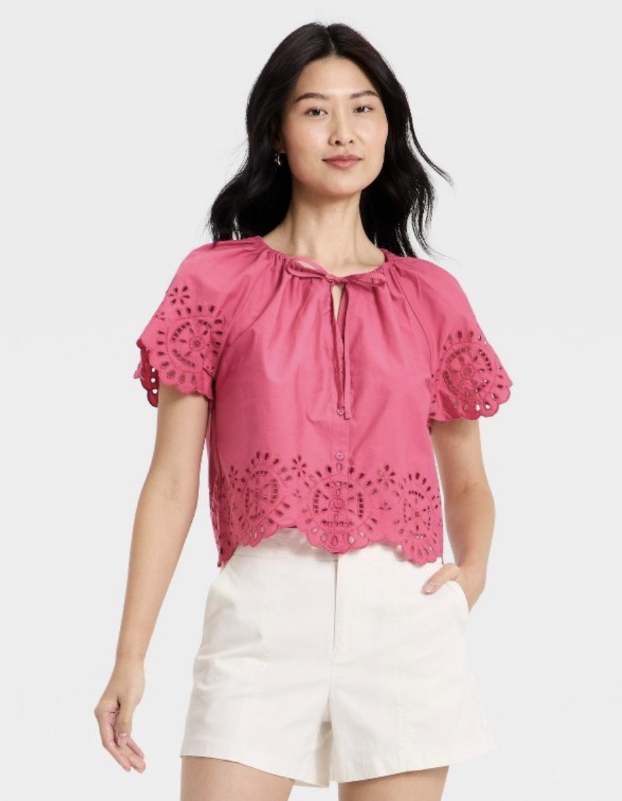 ONE - saw this $35 top and it's so pretty in person. I wouldn't tie the top and I'd wear it with white jeans. Yes!