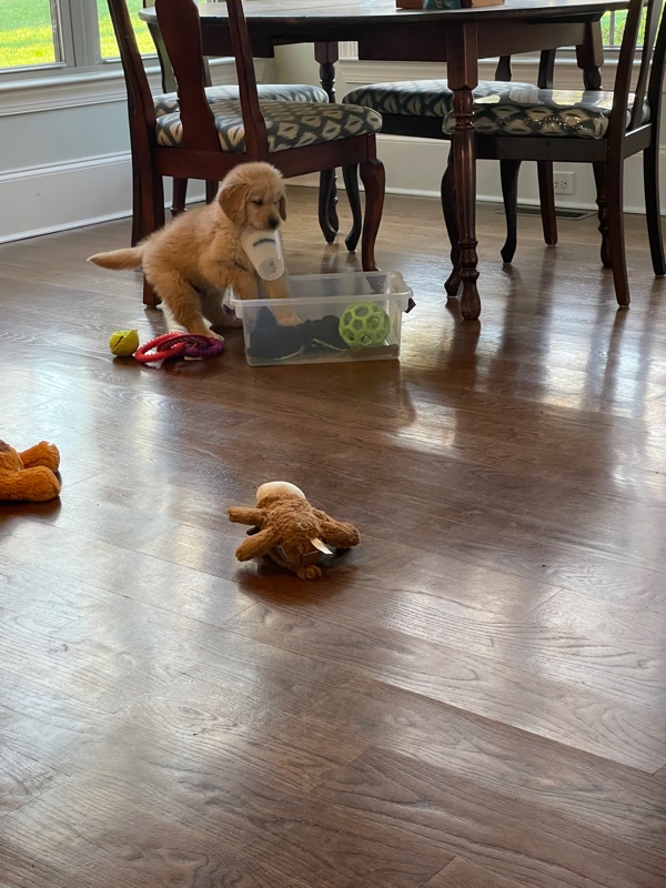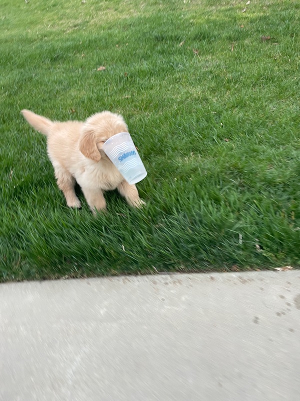 Skiff's favorite toy - a Sharky's cup that I was drinking my water out of! He's obsessed! Now his name is on the bottom of this one!