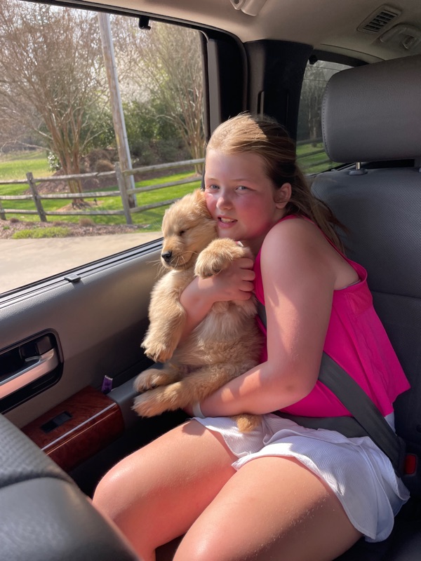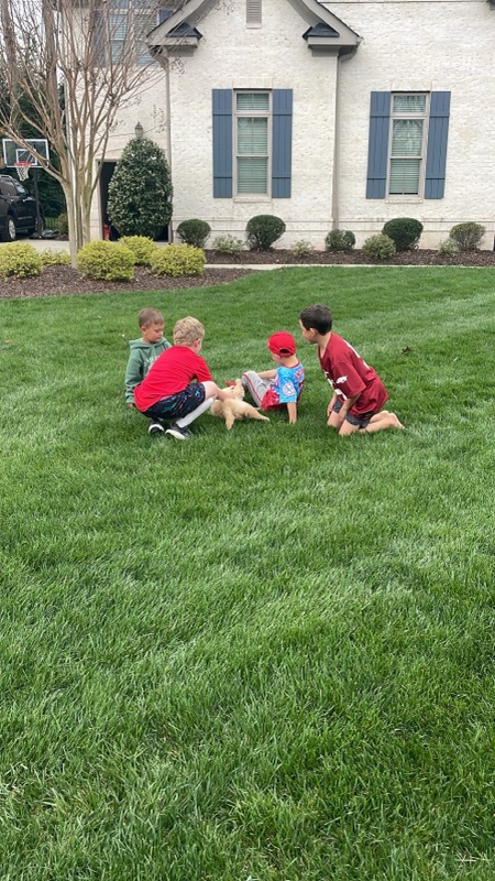 Grady had an opening weekend parade for baseball on Friday night that we all went to. We brought pizza home and ate in the driveway and played with the puppy.