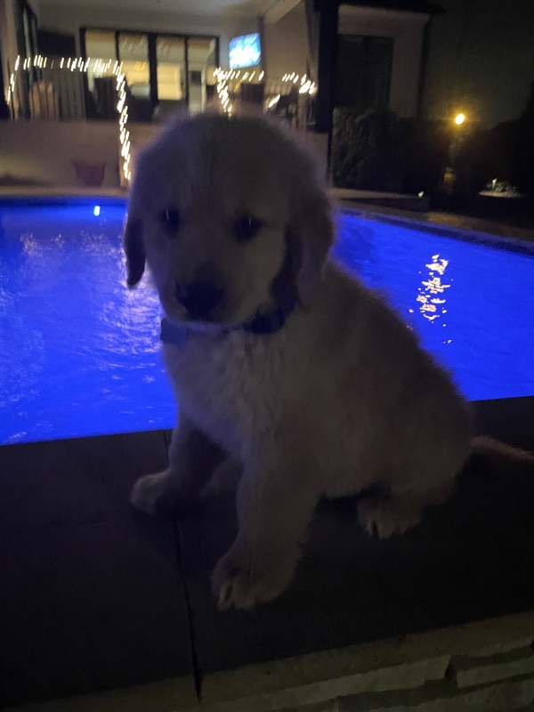 This boy jumped in Hilary’s pool like so quickly it shocked us all! He dove right in, came up and doggie paddled over to me. I was in the yard kinda caddy corner and he swam right over. It was cold but he loved it!