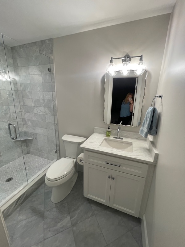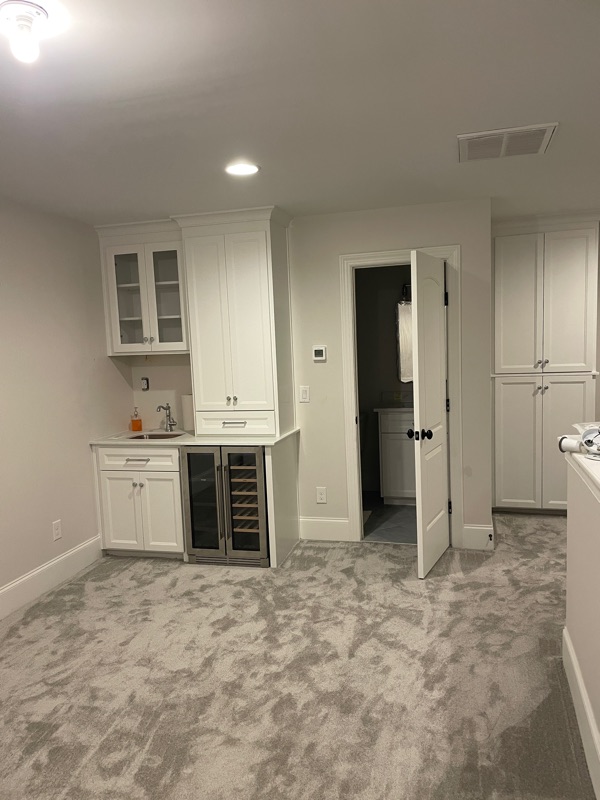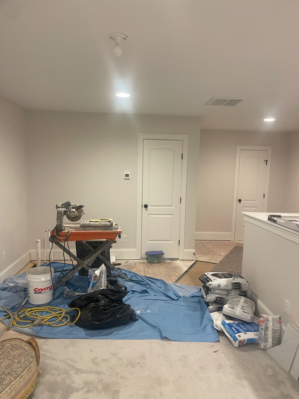 Should I mention how horrible of a tile job it is? Or how he used brown grout instead of gray and I had to paint every spec of grout to fix it? Or how we had a water pipe burst when the cabinets were installed? Or the two countertops it took to make sure the sink was in the middle? Or how the granite for our bar we picked out wasn't big enough even though they said it was? Or how the big closet cabinets couldn't fit up our doorway so they had to take them back to their shop to cut them in half to then bring them back? Or how the zillion pound beverage fridge was broken and I had to haul it back to the UPS store? Or how they didn't order enough tile? Like so many things went wrong.