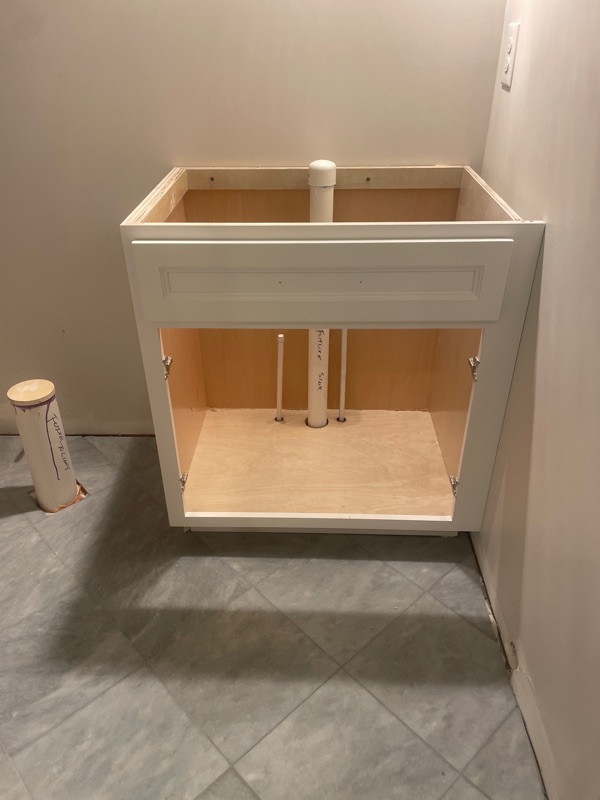 Add three cabinets - one in the bathroom, one big "closet" for games etc because there isn't a closet up there and one wet bar so they could have drinks etc.
