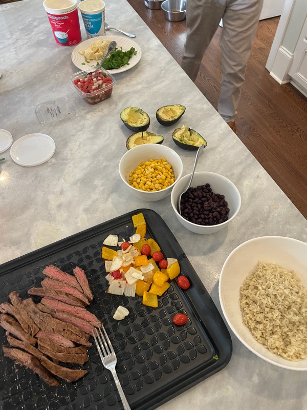Sunday night steak fajita bowls. Couple neighborhood girlies were here and ate with us which was fun.