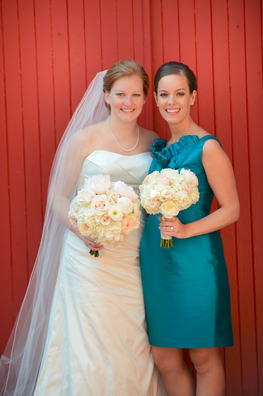 The bouquets that my bridesmaids carried were smaller versions of mine. Peonies, hydrangeas, garden roses. Love.
