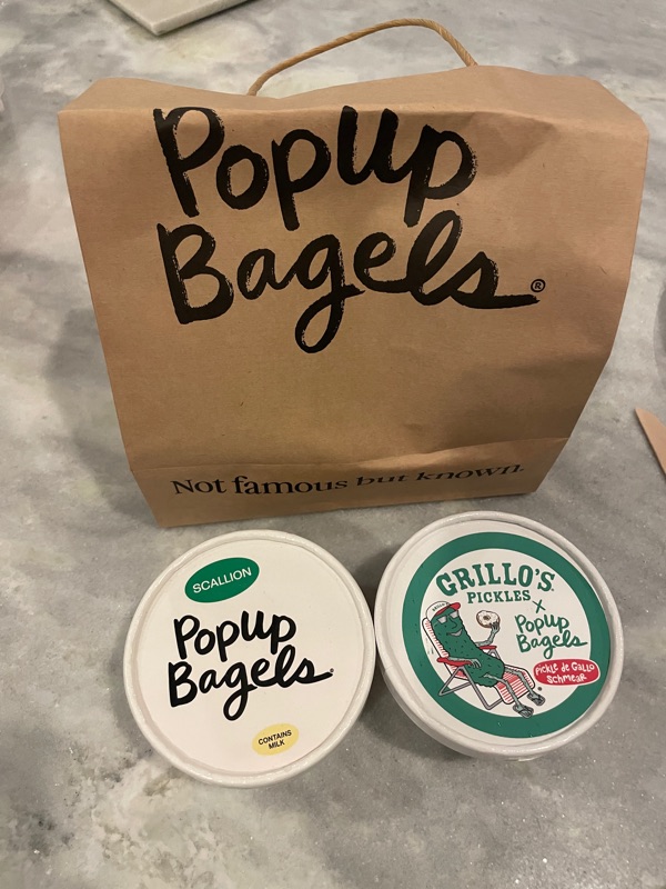 Saturday morning Grady and I ran to PopUp Bagels and grabbed some to bring home for breakfast. SO good. The pickle cream cheese was a bit spicy but it was all delish.