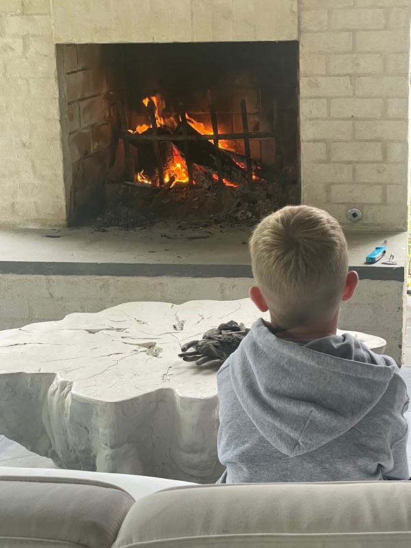 Saturday morning he had another game then we hung by the fire. He loves to tend to a fire like his Poppa!