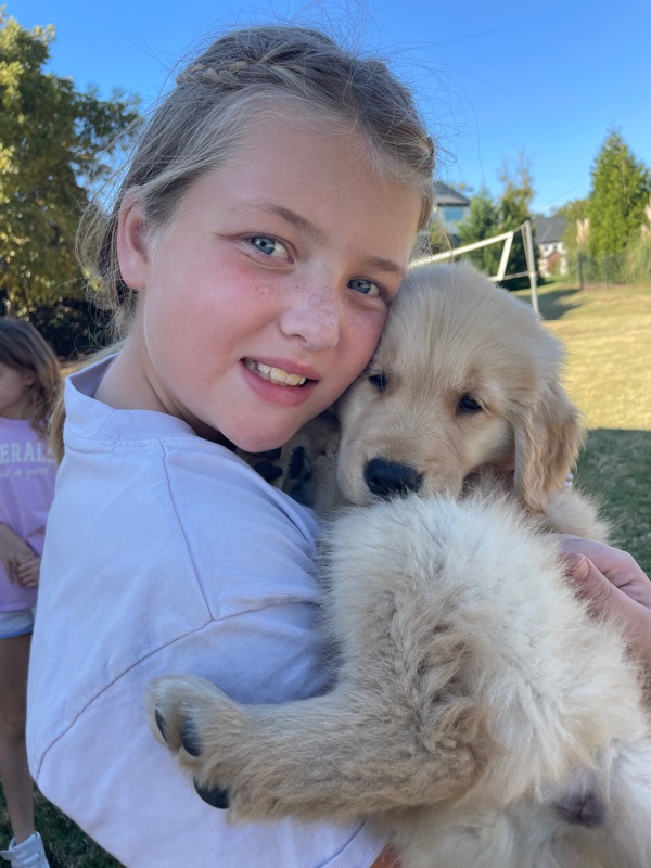 Friday our friend brought her new golden to the neighborhood playground to play. Molly Anne was IN LOVE! Look at that smile -- she needs one! We are looking around for breeders. I'm being insanely picky given how unhealthy mills was!