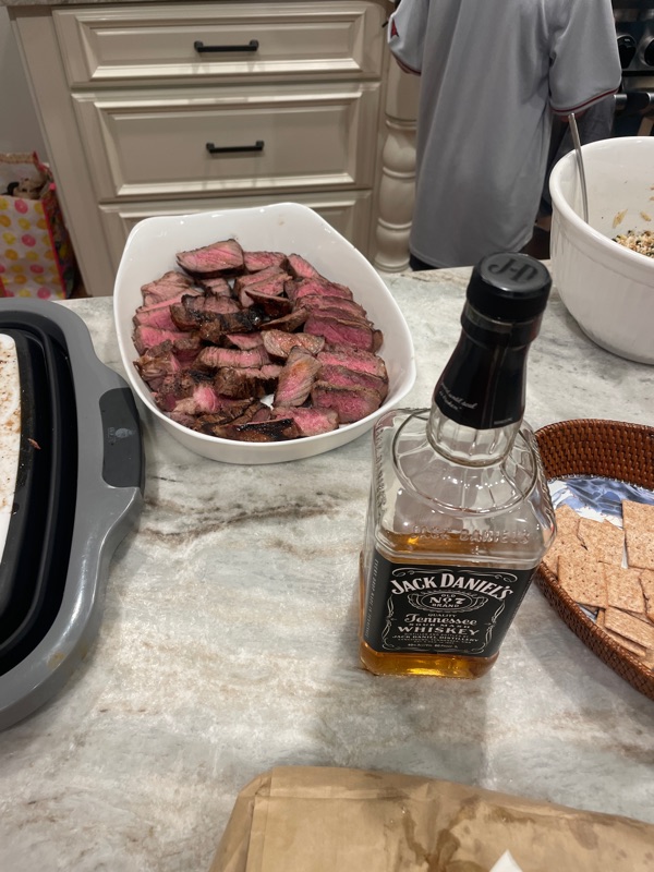 Saturday night we went to our new neighbor's house next door. They made a delish dinner! Look at that steak!