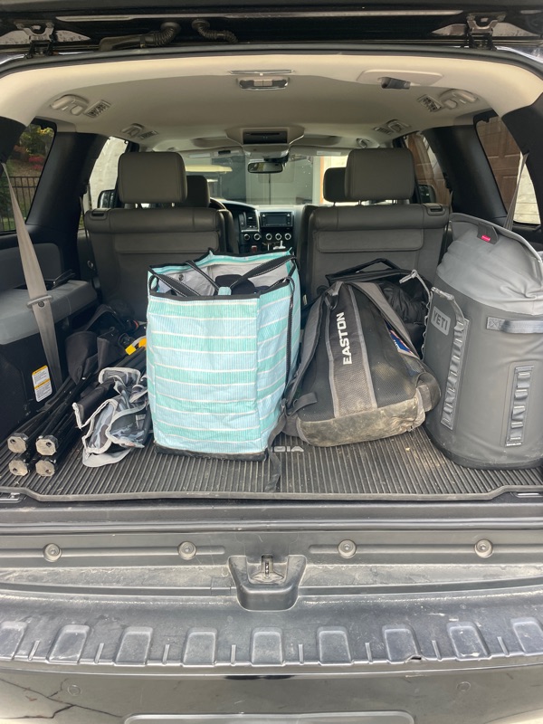Also, this was my car to go to the games. Can anyone relate?! Speaker, charger, purse, cooler, snacks, lunch, chairs, bat bag, sunscreen, ice packs. ALL OF THE THINGS! I love it.